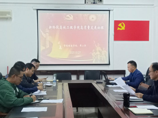 2021年10月27日下午15:10,学院院长黄小兵在学院会议室306以“新阶段高校二级学院高质量发展初探”为主题上了一堂生动、深刻的党课,学院领导、各科室、中心负责人、各党支部书记、组织员参加了本次学习。
