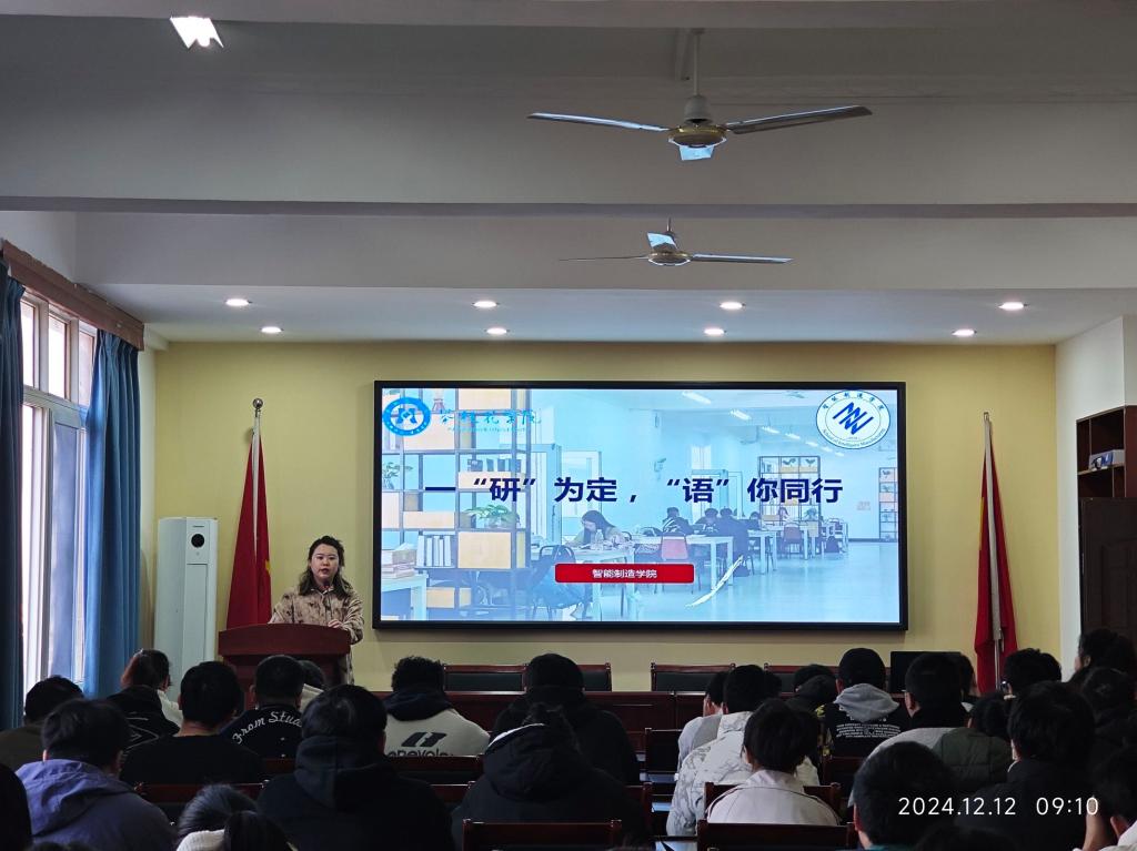 为帮助我院同学更好地备战考研,我院于12月12日在砺志楼201室举办了主题为一“研”为定,“语”你同行的考研动员大会。参加本次会议的有党委副书记简宇苑老师、分团委书记马潇然老师、杨艳老师、周攀老师以及考研同学。