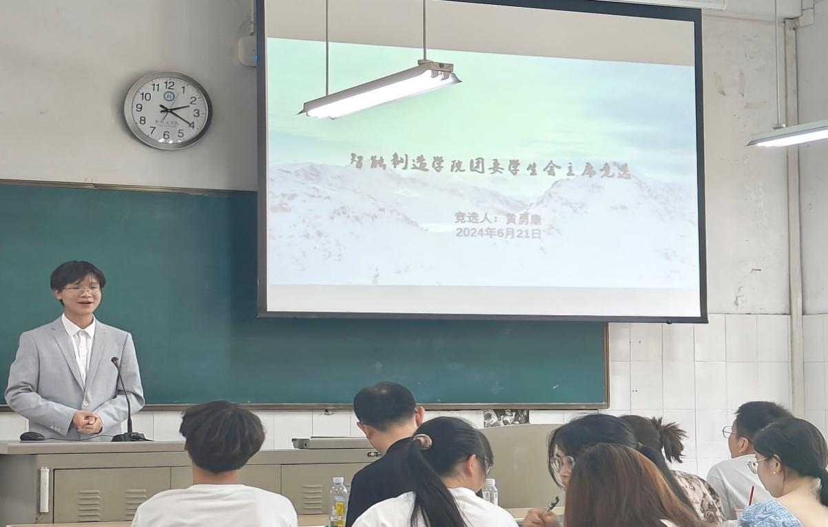 为加强学院团学组织队伍建设,开展好学院学生工作,6月21日中午,攀枝花学院智能制造学院学生会主席换届大会在2-104召开。智能制造学院党委书记薛荐戈老师、分团委书记马潇然老师、2022级辅导员付国训老师以及现任主席担任此次换届大会评委,2023届学生会主要干部以及2024届学生会干事参加了本次会议。