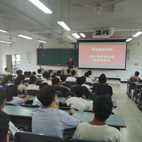 教研室主任张健首先介绍了车辆工程教研室基本情况,然后从专业发展、学业修读、考研、学生参与项目研究及创新创业等方面进行了交流,教研室郭小兰老师以案例形式与同学们分享了学科竞赛的有关事项,教学科杨艳老师就学生选课、毕业及学位授予注意事项进行了讲解。最后,同学们就自己关心的问题和与会老师进行了自由交流,见面会达到了预期效果。本次见面会历时3小时,学院院长黄小兵、车辆工程教研室全体教师,2021级车辆工程本科专业、汽车电子技术专科专业及2019级车辆工程(专升本)150余名新生参加了见面会。