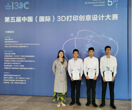 9月25日,第五届中国(国际)3D打印创意设计大赛决赛在陕西省西安市落下帷幕,我院封坤、郭书吕、蔡毅同学的作品——月娥青灯在决赛排名第10,获得决赛优秀奖。